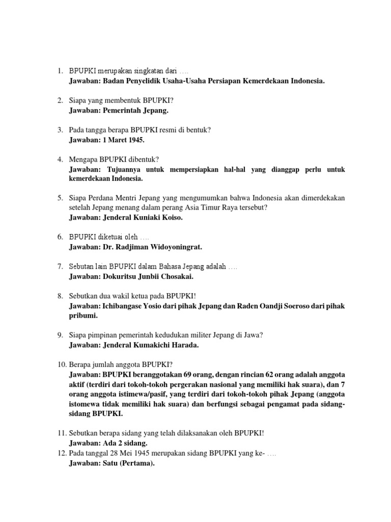 23+ Bpupki Dibentuk Pada Tanggal 1 Maret 1945 Diketuai Oleh