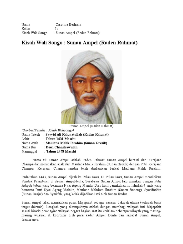 Sunan Ampel Raden Rahmat from imgv2-2-f.scribdassets.com Sebutan sunan merupakan gelar kewaliannya. Kemudian beliau mendapat gelar karena berasal dari sebutan sunan yang berasal dari gelar kewaliannya, sedangkan nama ampel atau ampel denta ini diambil dari tempat tinggalnya yang dekat surabaya. Nama asli sunan ampel adalah ali rahmatullah atau dikenal raden rahmat.
