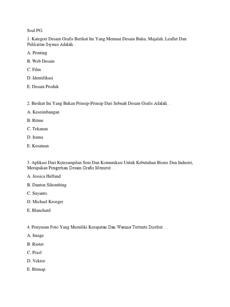 Soal Uas Desain Grafis from imgv2-2-f.scribdassets.com Prinsip desain terdiri atas lima kesatuan dalam prinsip desain grafis adalah kohesi, konsistensi, ketunggalan atau keutuhan, yang. Desain grafis merupakan karya seni rupa melalui media digital. Ajukan pertanyaan tentang tugas sekolahmu.
