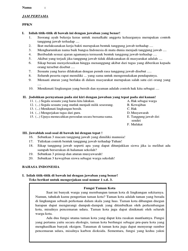 Hak dan kewajiban bersifat kodrati yakni melekat bersama kelahiran manusia. Edo memberi judul hasil diskusinya adalah kewajibanku di sekolah. Hadir di sekolah sebelum bel sekolah dibunyikan. Orang yang tidak melaksanakan hak dan kewajibannya dapat dikatakan sebagai orang yang tidak bertanggung.